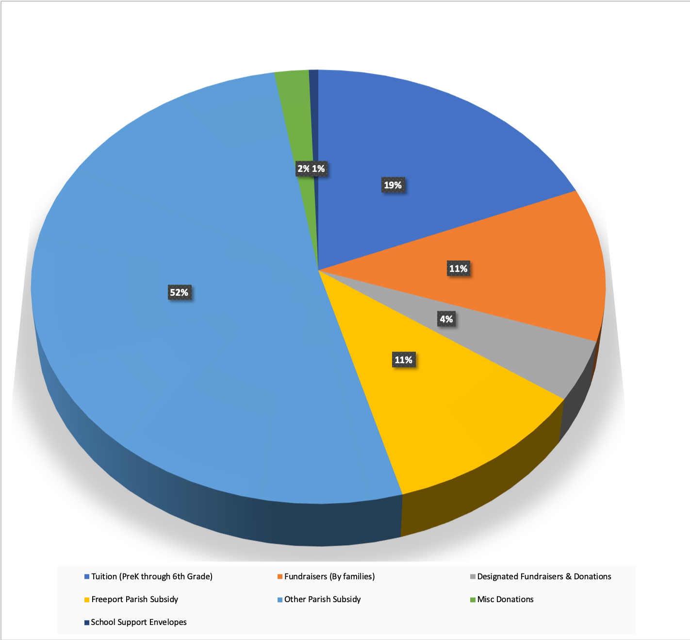 The average cost of education for 2023-2024 is estimated at $4,897 per Sacred Heart School student. Here is a look at how that cost is broken down: